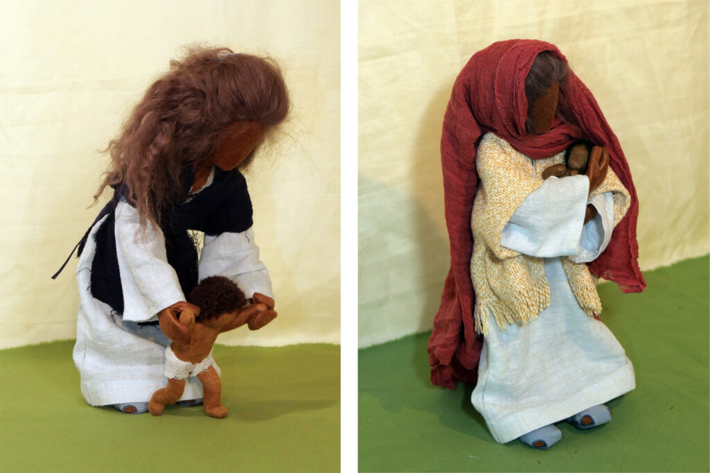 zwei Babyfiguren**: Baby (ca. 10 cm) und Neugeborenes auf dem Arm der Mutter (ca. 8 cm)